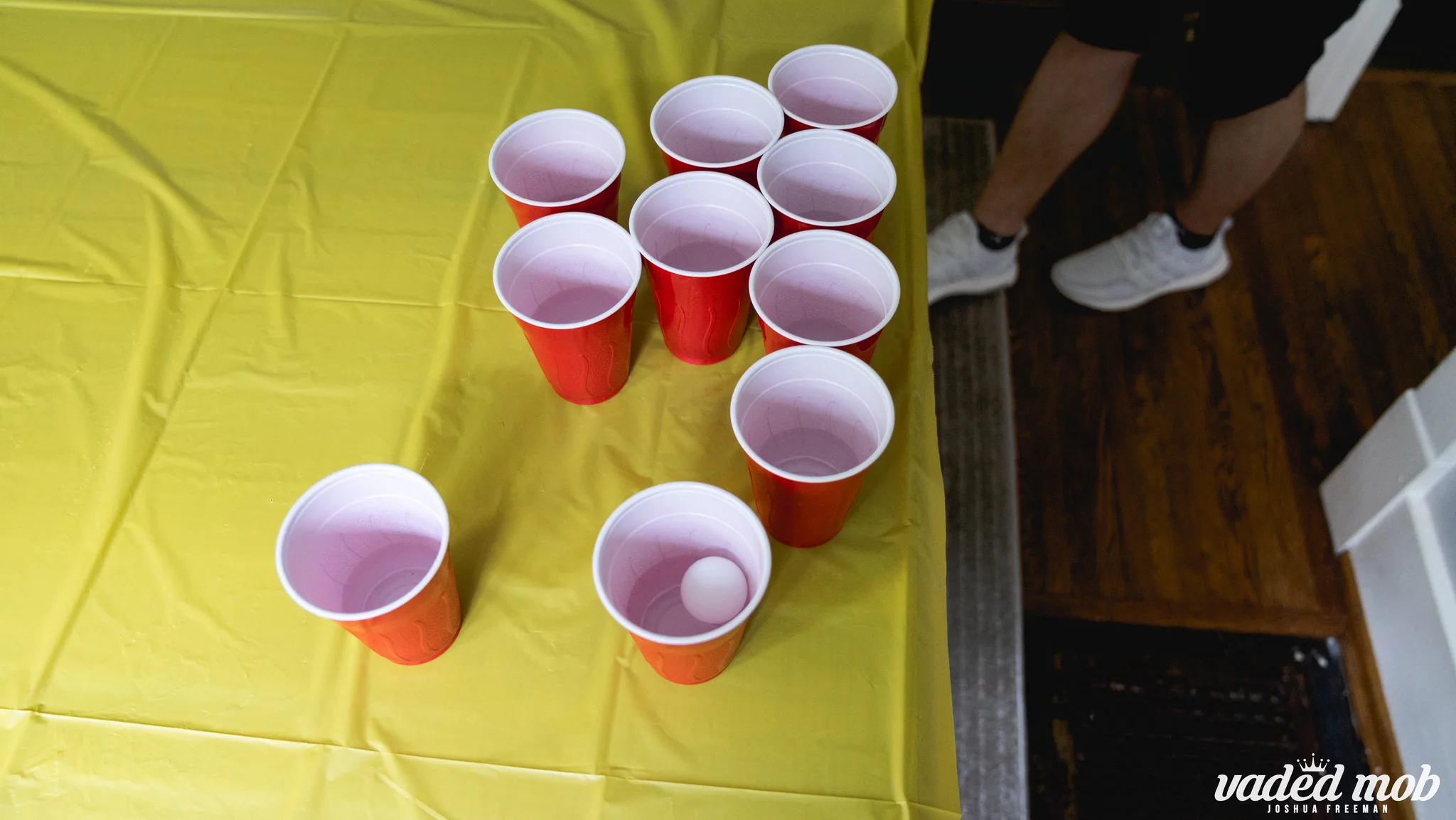 The girls had a few glasses of wine, while the guys got down on some pong.